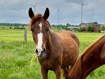 We hope this filly will be a future riding star and another foundation mare for our breeding program. Currently living with her breeder in Germany, she has been described as "a lab"- friendly, sensible, flashy, and a powerhouse pedigree (Danciero x Damon Hill x Quaterback).